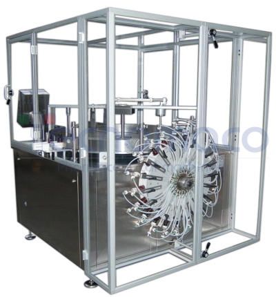 Asegura una perfecta limpieza de la superficie interna de los frascos antes de la sucesiva operaciòn de dosificado del producto.